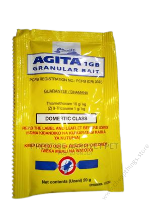 Agita 1GB Fly Bait is a new fly bait formula containing a house fly sex attractant which encourages both male and female houseflies to remain in the treated areas, thereby feeding on the bait.