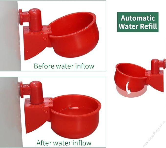 Gravity-Enabled Design:Â The chicken drinker cups are equipped with a gravity feed system, ensuring that they automatically refill with water as needed. This design prevents overflow and provides your poultry with a continuous supply of clean water.