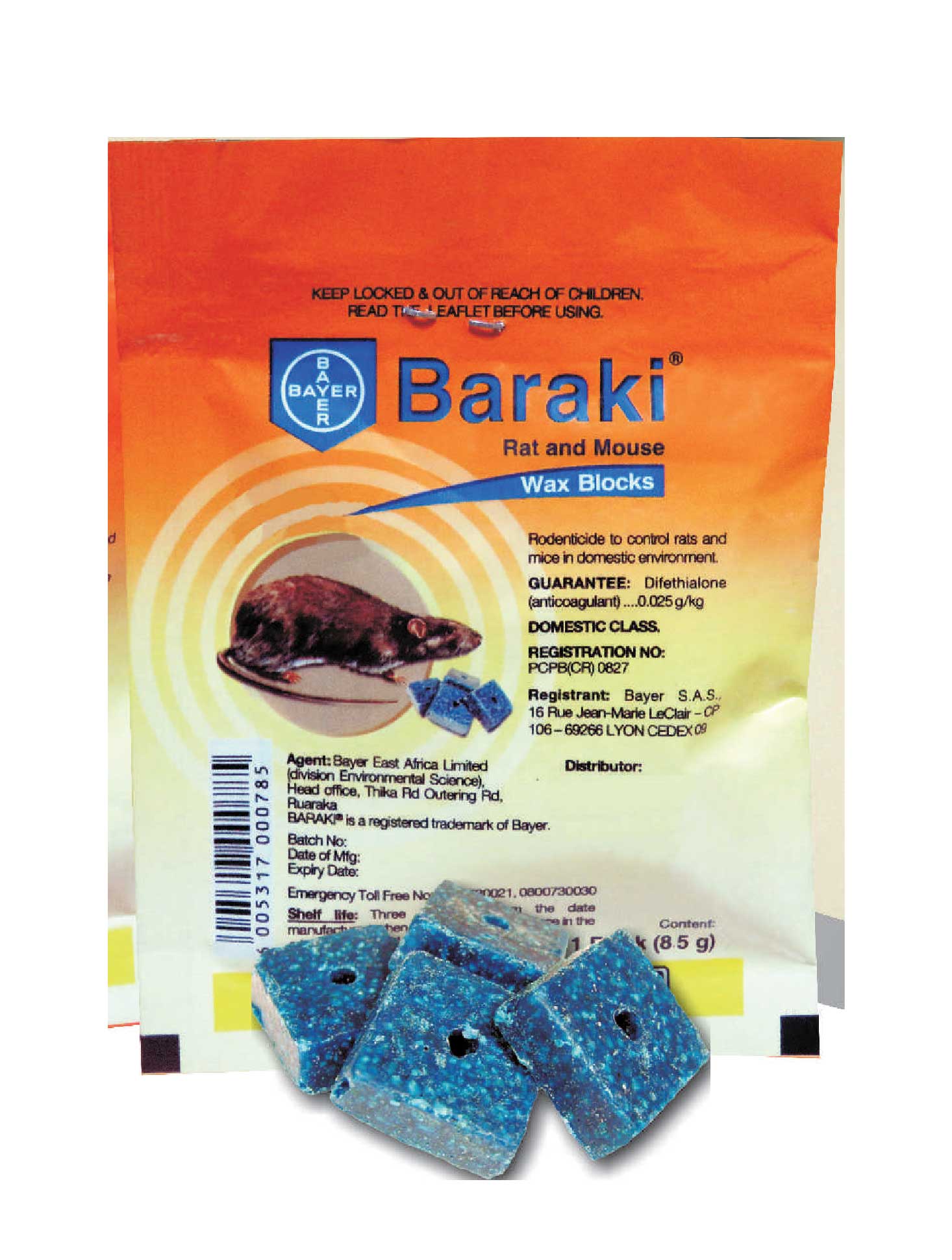 Baraki Blocks is a highly potent anticoagulant rodenticide that is effective against both rats and mice, including resistant strains in public places and gardens.