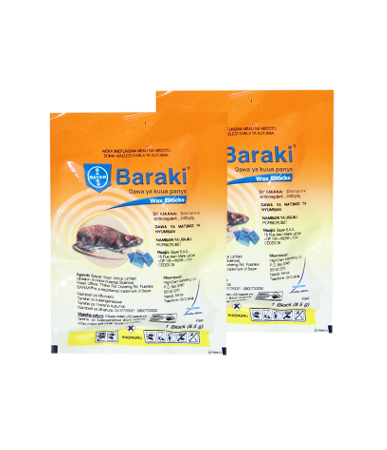 Baraki is a highly potent anticoagulant rodenticide that is effective against both rats and mice, including resistant strains in public places and gardens.