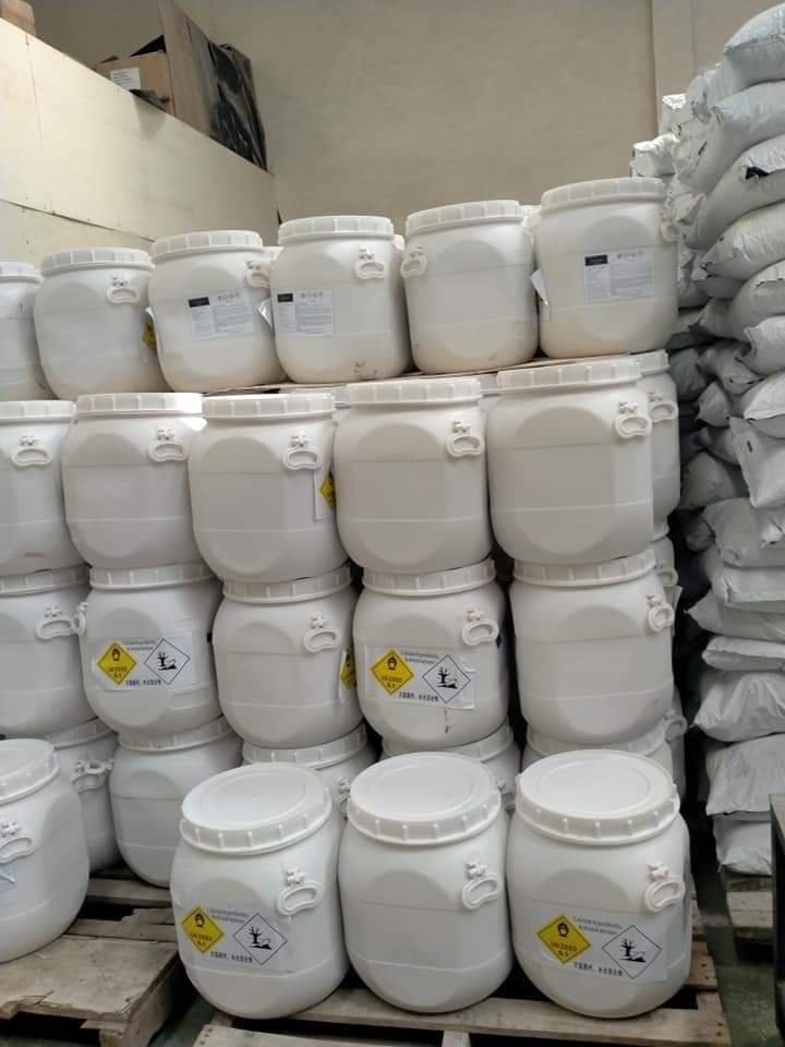 - In plastic drum lined with a plastic bag, net wt. 45kg. The “Oxidant” label should be signed.